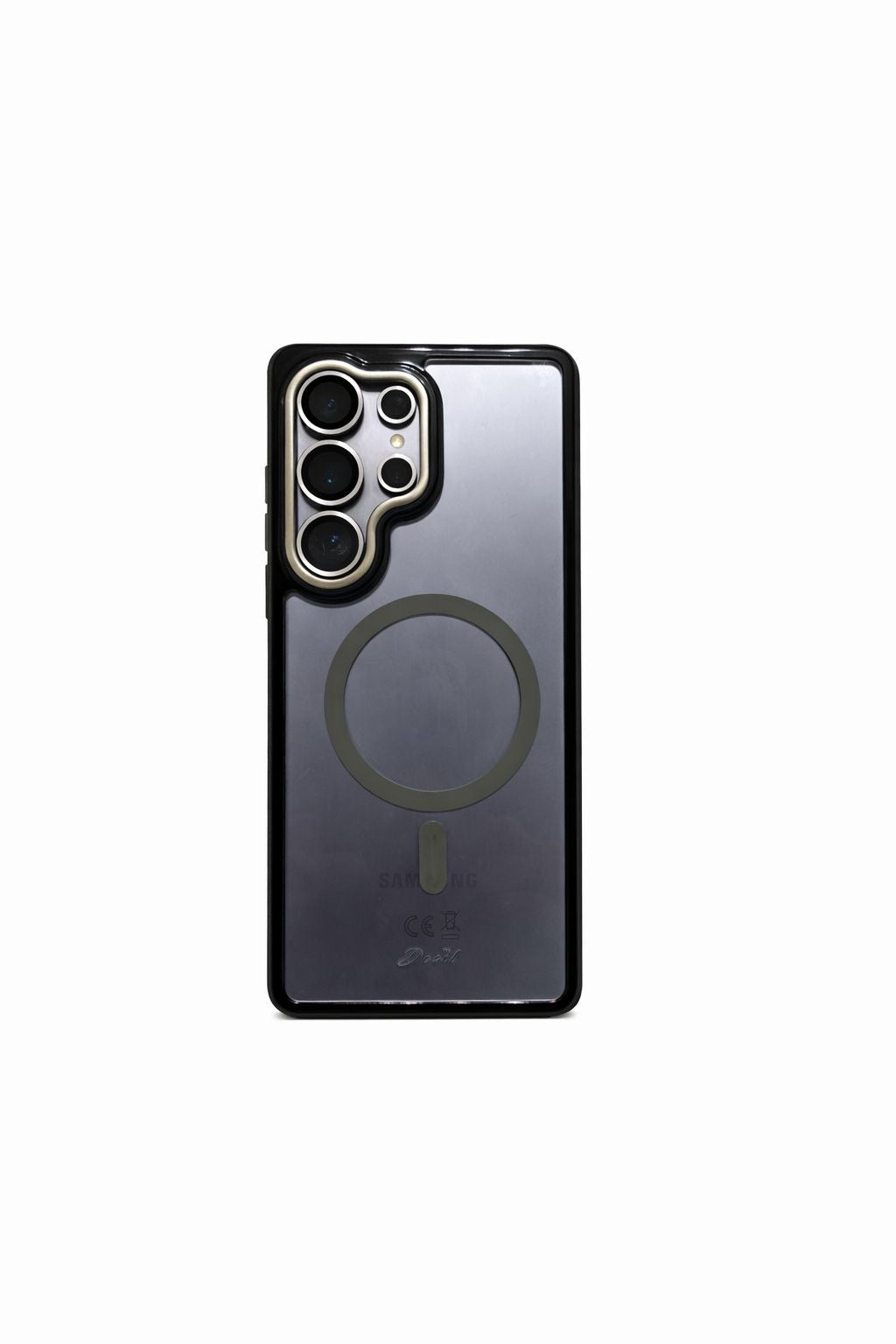 | Design Trasparente & Elegante: Il retro cristallino mette in risalto il design originale Samsung, mentre i bordi colorati aggiungono un tocco di lusso. | Finiture Metallizzate: Disponibile in due varianti colore per i bordi e l'anello magnetico: Oro e Argento. |