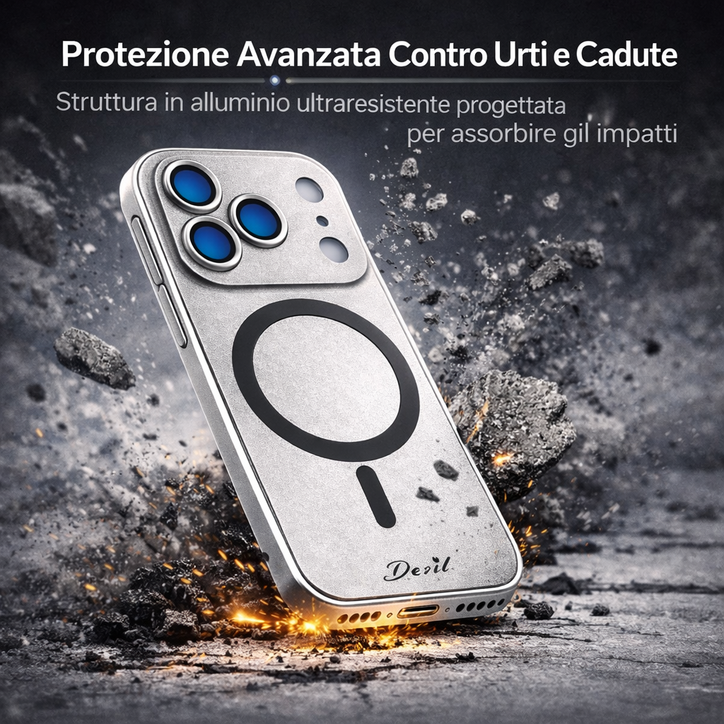 | Materiale Alluminio Aerospaziale | Protezione Anti-Urto estrema su tutto il corpo del telefono, massima durata e leggerezza. |
